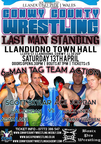 On Saturday the 13th of April, the Conwy County Wrestling Academy, will be at Llandudno Town Hall with their Last Man Standing show.