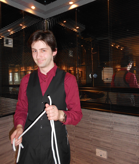 The second is a particular challenge for magicians, as you can see from this picture. People quite often say that magicians do everything with mirrors, but having the walls behind you covered with mirrors certainly makes things interesting!