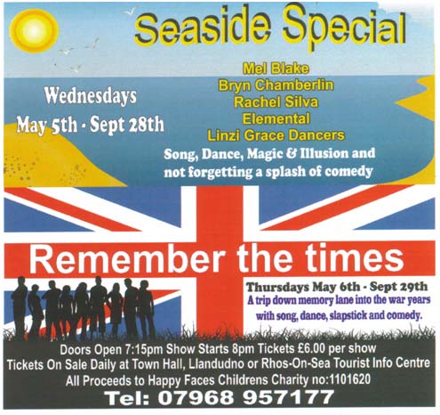 We’re very pleased to be able to tell you that we’ll be taking part in Happy Faces’ summer season in Llandudno town hall again this year. This will be our fourth year as part of the shows, and we’re really looking forward to them.